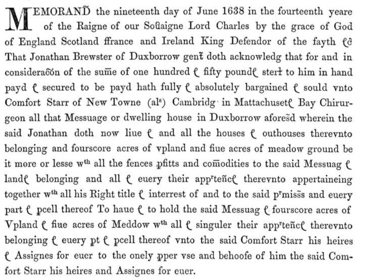 Jonathan Brewster sold 80 acres to Comfort Starr